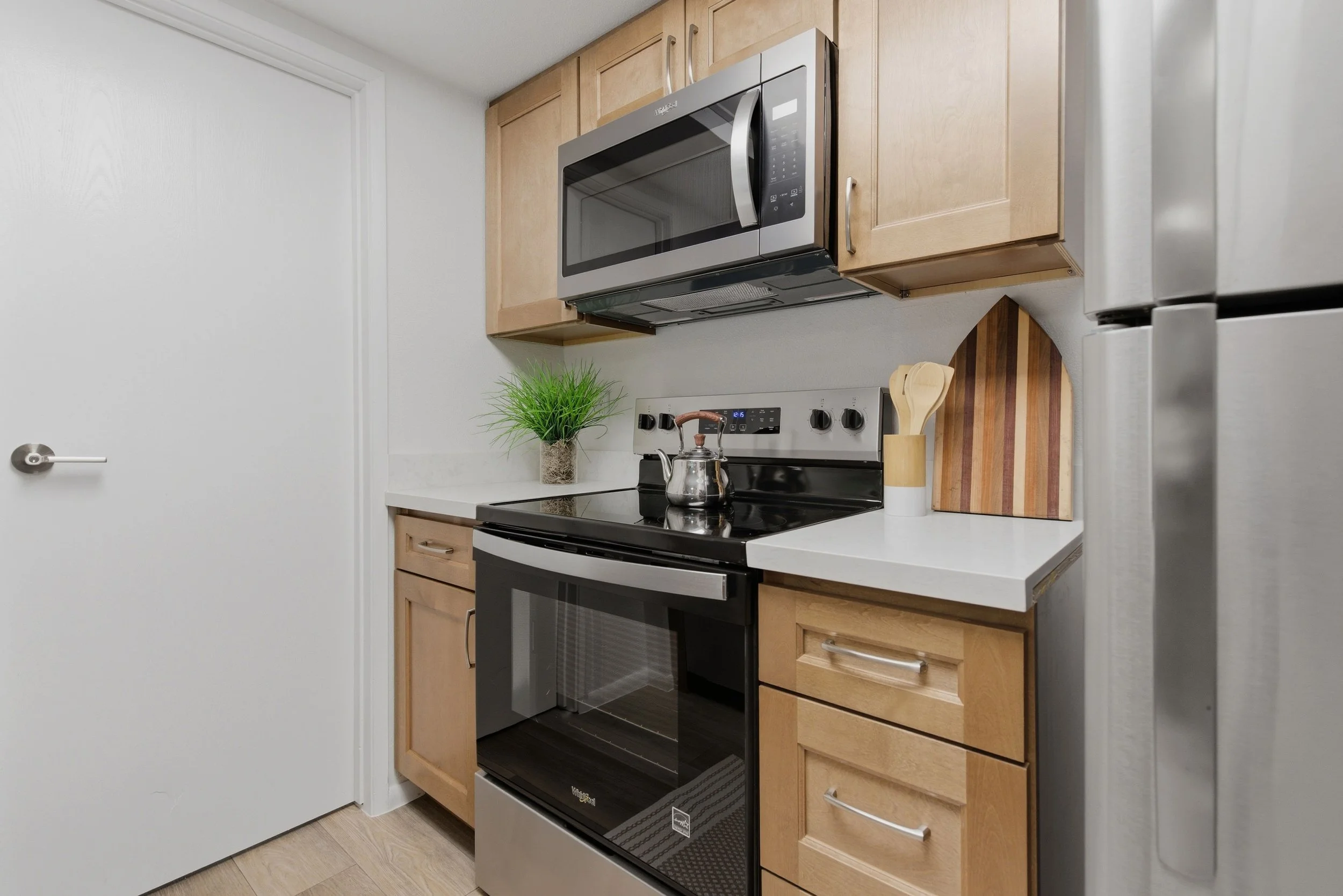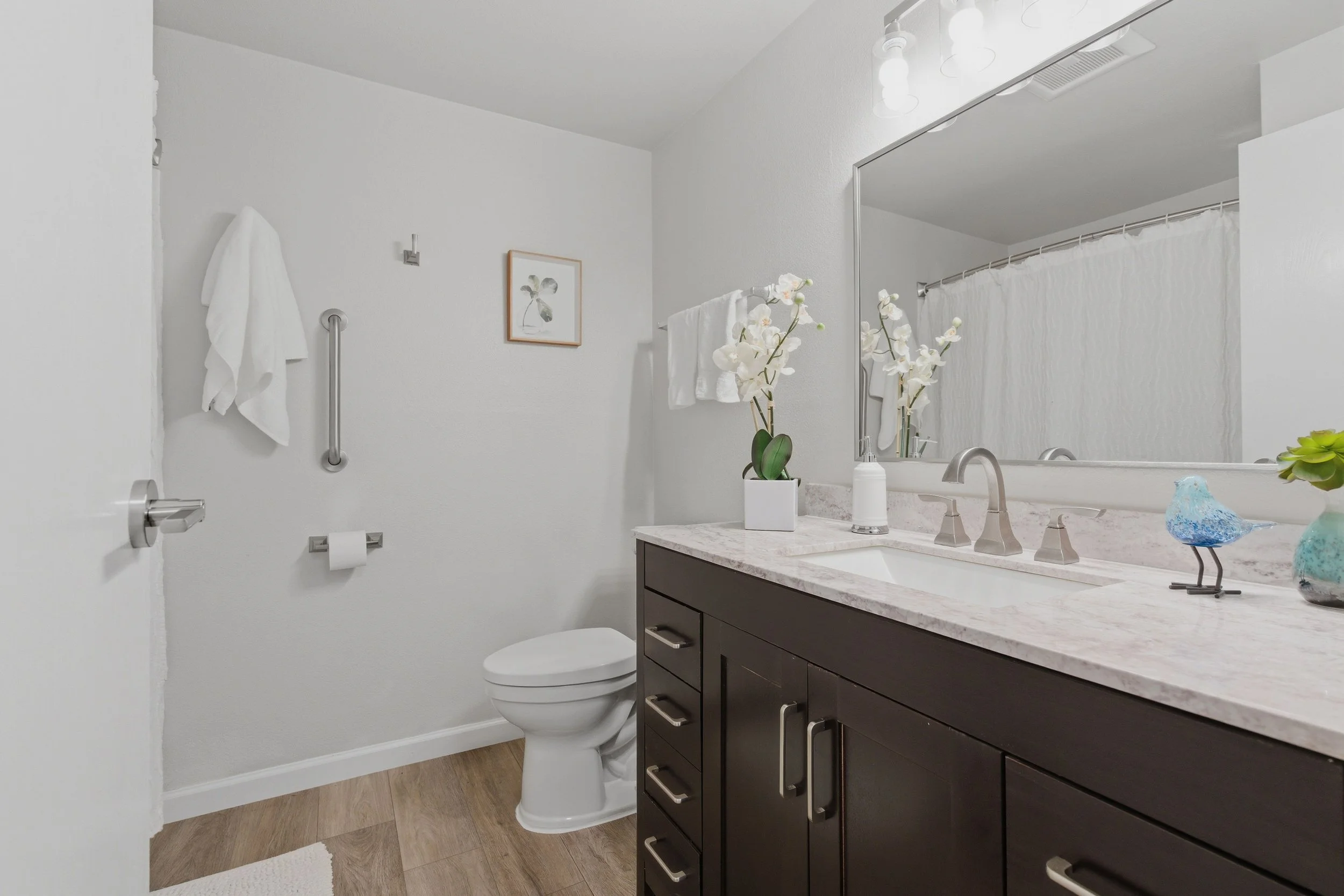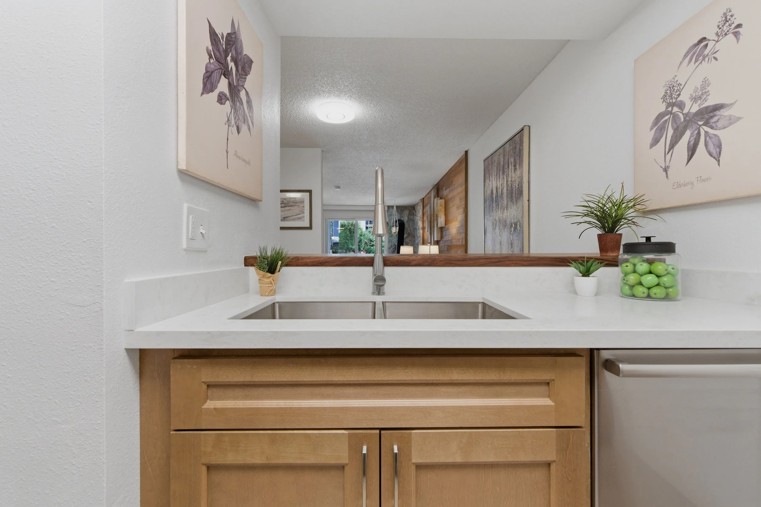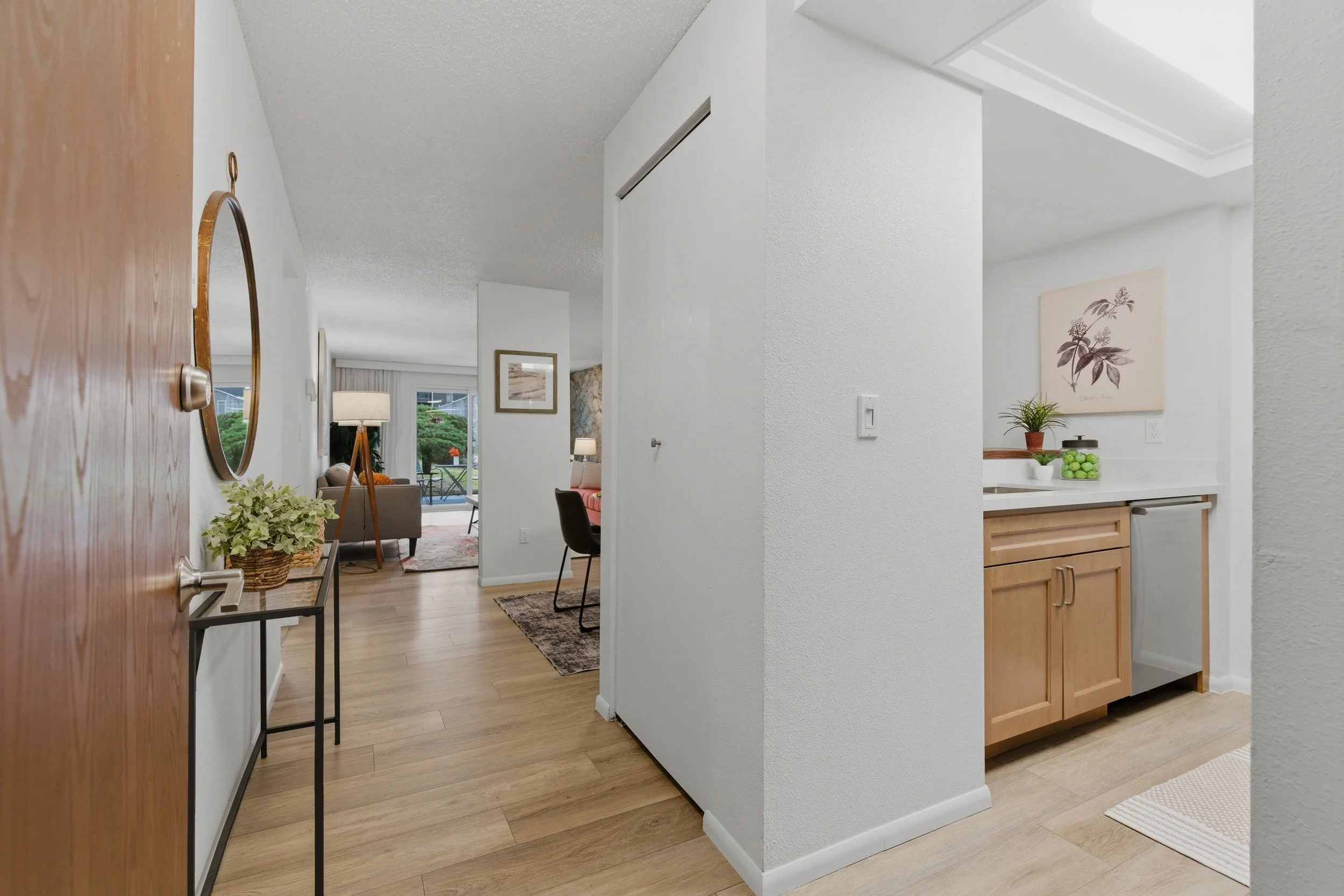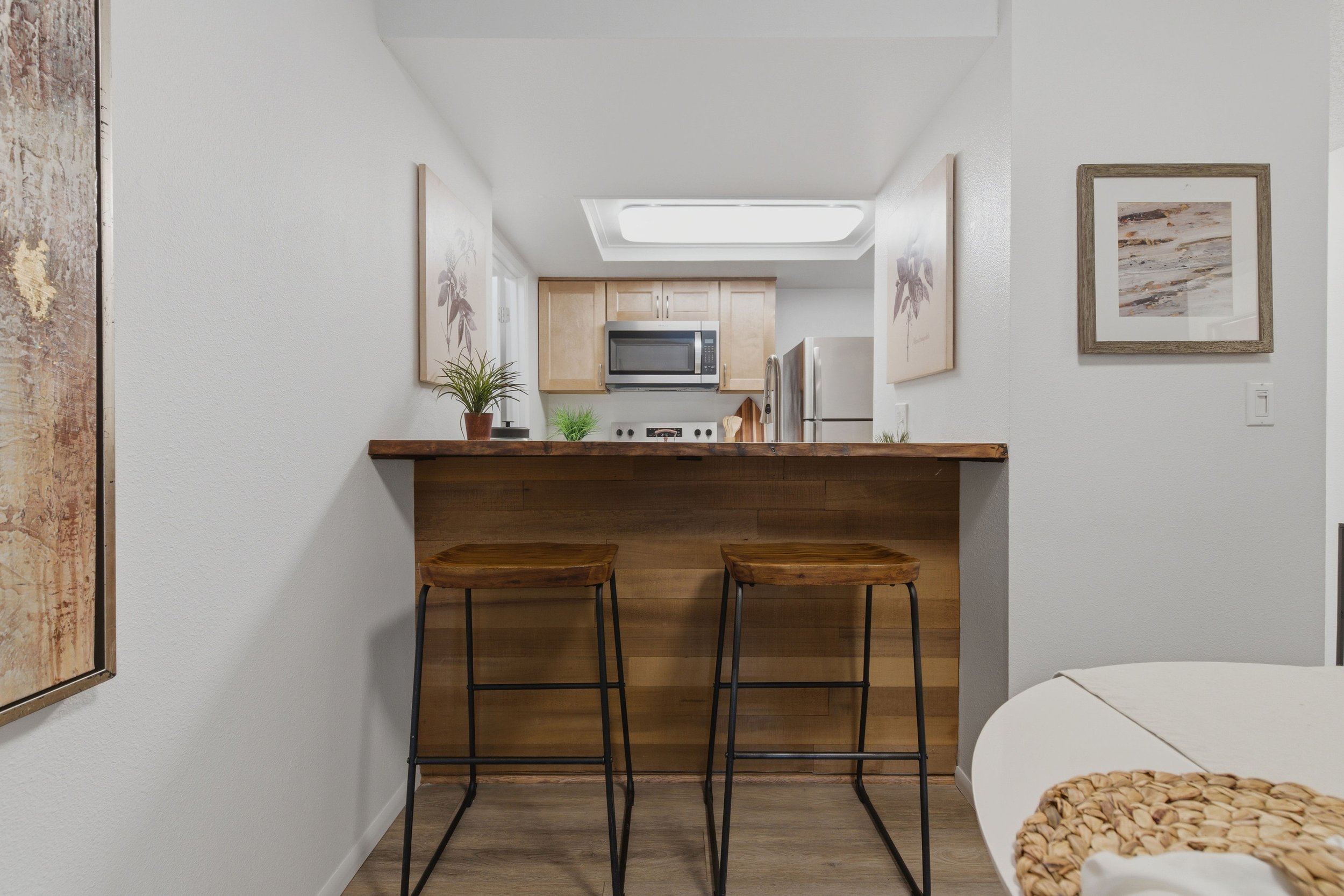 Prime Bellevue location across from Microsoft campus — you’ll love it! This updated 2-bedroom condo offers a smart, comfortable layout with luxury plank floors and fresh paint throughout. The all-new kitchen offers new cabinetry, quartz countertops, sink, faucet, and a honed wood-crafted breakfast bar, paired with stainless appliances, plus a large pantry ready for all your Costco runs. Both bedrooms offer walk-in closets with generous storage, and the full bathroom adds everyday function and comfort. Located on the ground floor, the patio extends your living space outdoors and is perfect for warm summer evenings and casual BBQs. Secure building entry, gated mailroom, coin-operated laundry on the same floor, deeded parking space, and ample visitor parking add everyday convenience. Pet-friendly community amenities include outdoor pool and tennis court. No rental cap and no current special assessments make this a strong option for both homeowners and investors. HOA dues include W/S/G and earthquake insurance. Exterior recent upgrades to the complex include new siding, roof, and double pane windows. Strong rental demand and future appreciation potential. Close to Overlake shopping, parks, trails, transit, major highways, future light rail, popular Bellevue schools, and major employers. A great value in a convenient Bellevue location.
