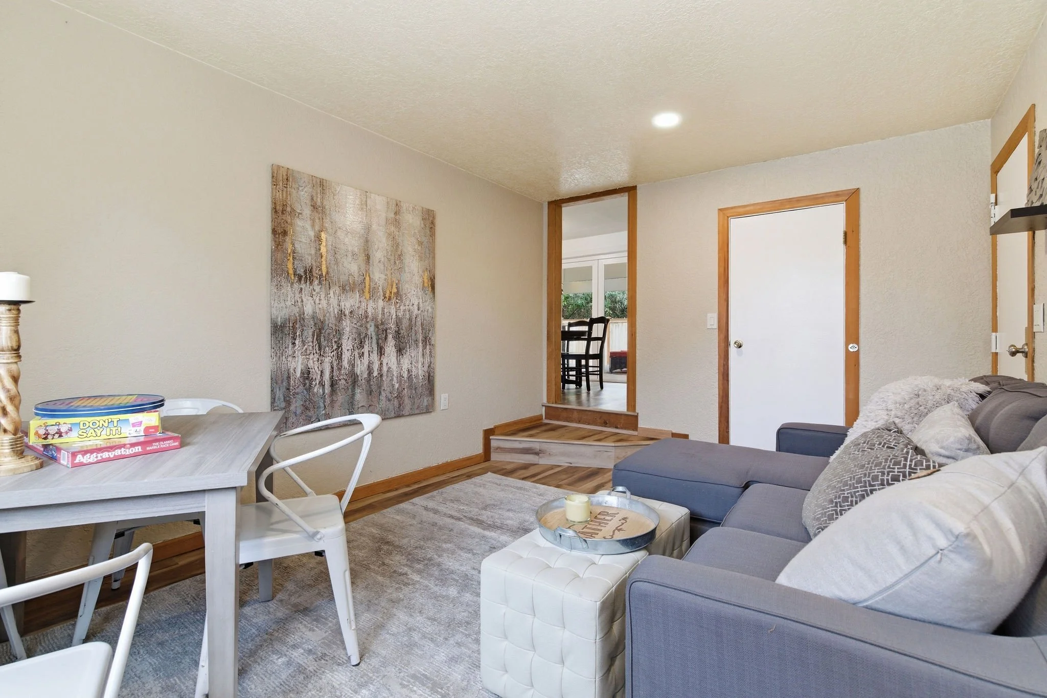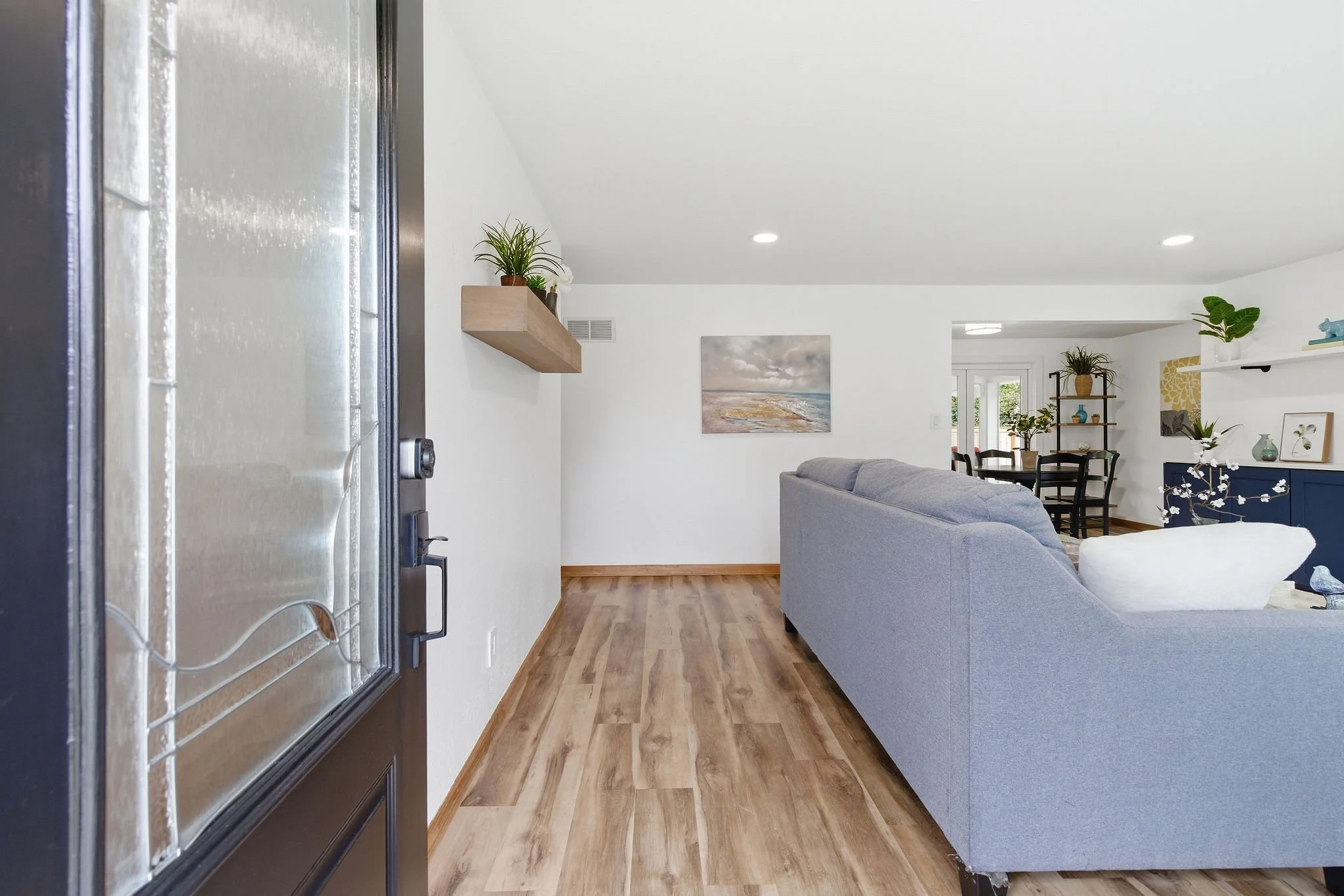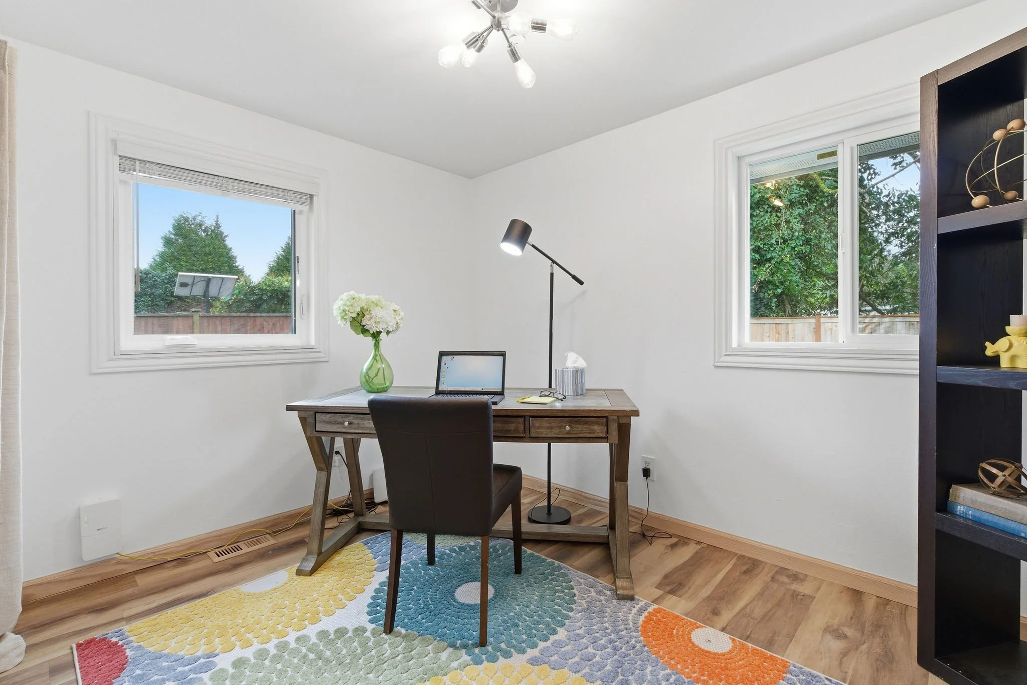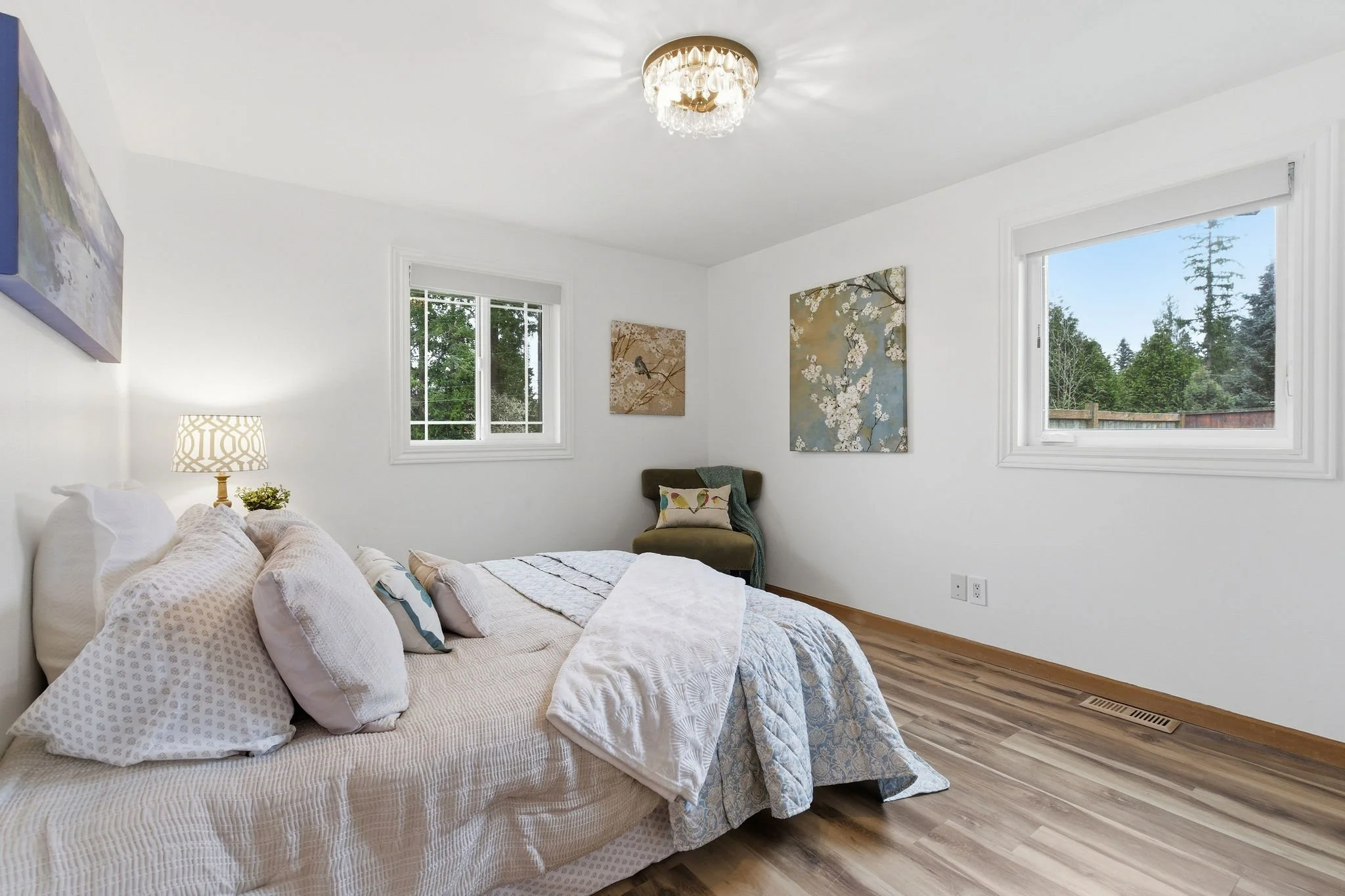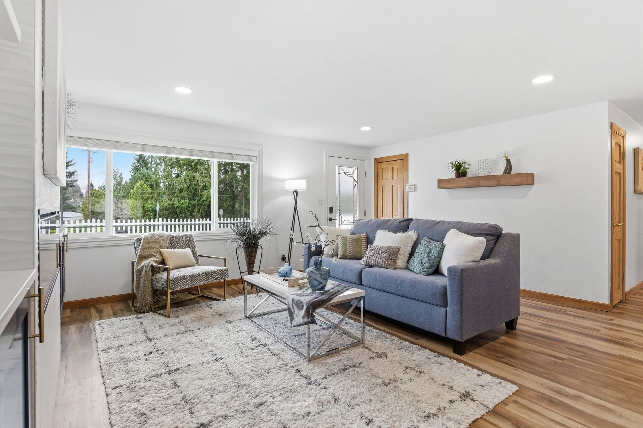 Indoor-outdoor living at its best. A wall of folding glass opens the kitchen and dining area to a covered outdoor kitchen and entertaining deck, creating seamless indoor-outdoor living and a true entertainer’s setting. This thoughtfully updated home lives larger than its footprint and offers numerous upgrades throughout. The kitchen features new quartz countertops, refreshed cabinetry and hardware, stainless steel appliances including a gas cooktop with convection oven, and durable LVP flooring throughout. The inviting family room showcases a custom electric fireplace with flanking cabinetry and quartz top. Outdoor living shines with a covered outdoor kitchen, natural gas grill and griddle, built-in recycling and trash pull-outs, and wiring in place for a patio heater. The fully fenced yard offers a level and private setting with new sod, updated fencing, and usable outdoor space. Exterior improvements include Hardie-board siding, triple-pane windows, asphalt driveway, storage shed, and gated RV or boat parking. Extra finished space adjacent to the garage offers flexibility for office, workout room, media room, or hobbies. Major updates include roof, air conditioning, water heater, crawlspace and attic insulation, and septic lids. Property currently served by septic with city sewer stub available at the front of the lot per seller documentation. Convenient access to I-5, I-405, Mill Creek, and Lynnwood. Enjoy nearby Martha Lake Airport Park, just a short walk away with a dog park, playground, skate park, and open green space.