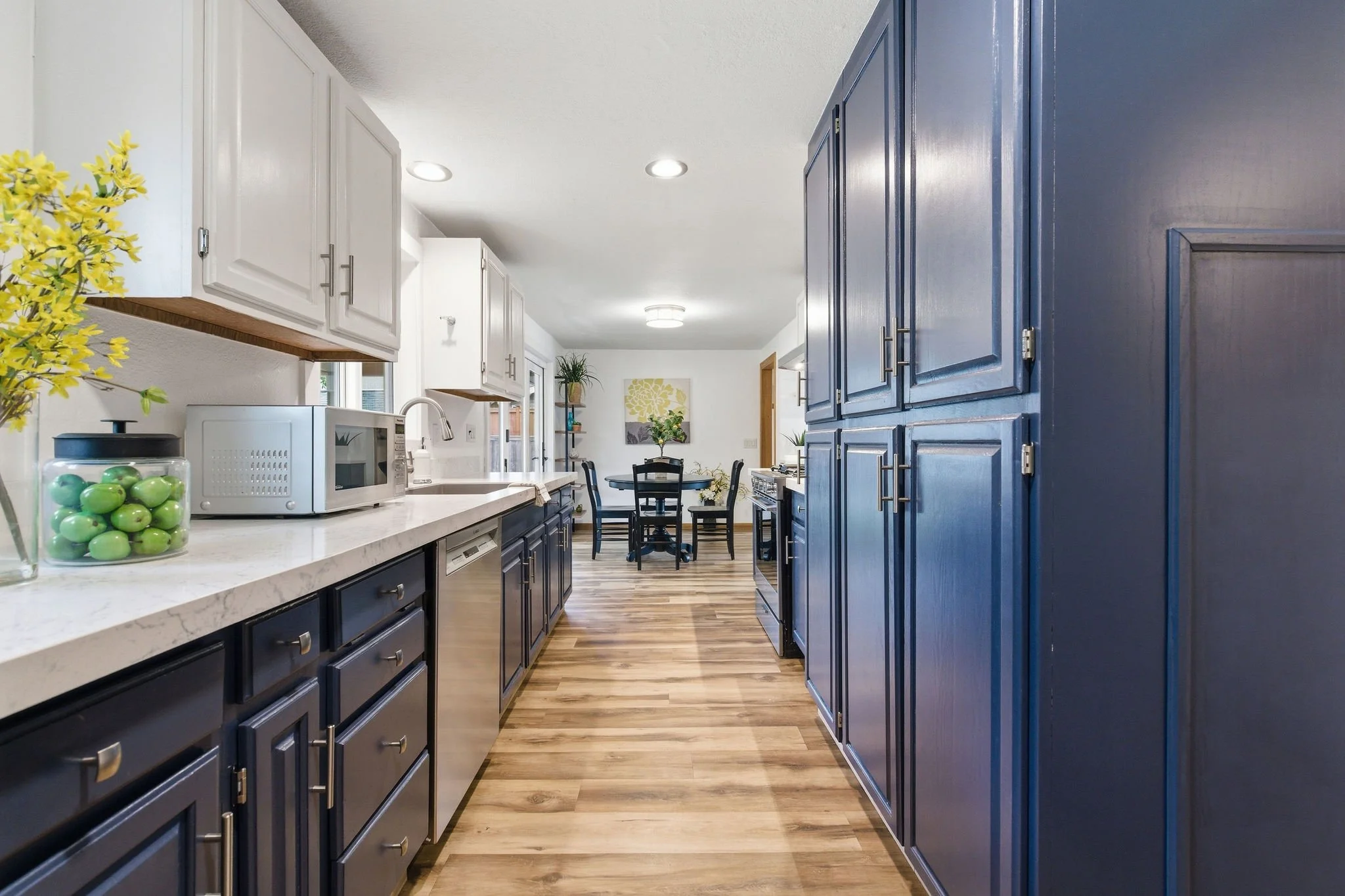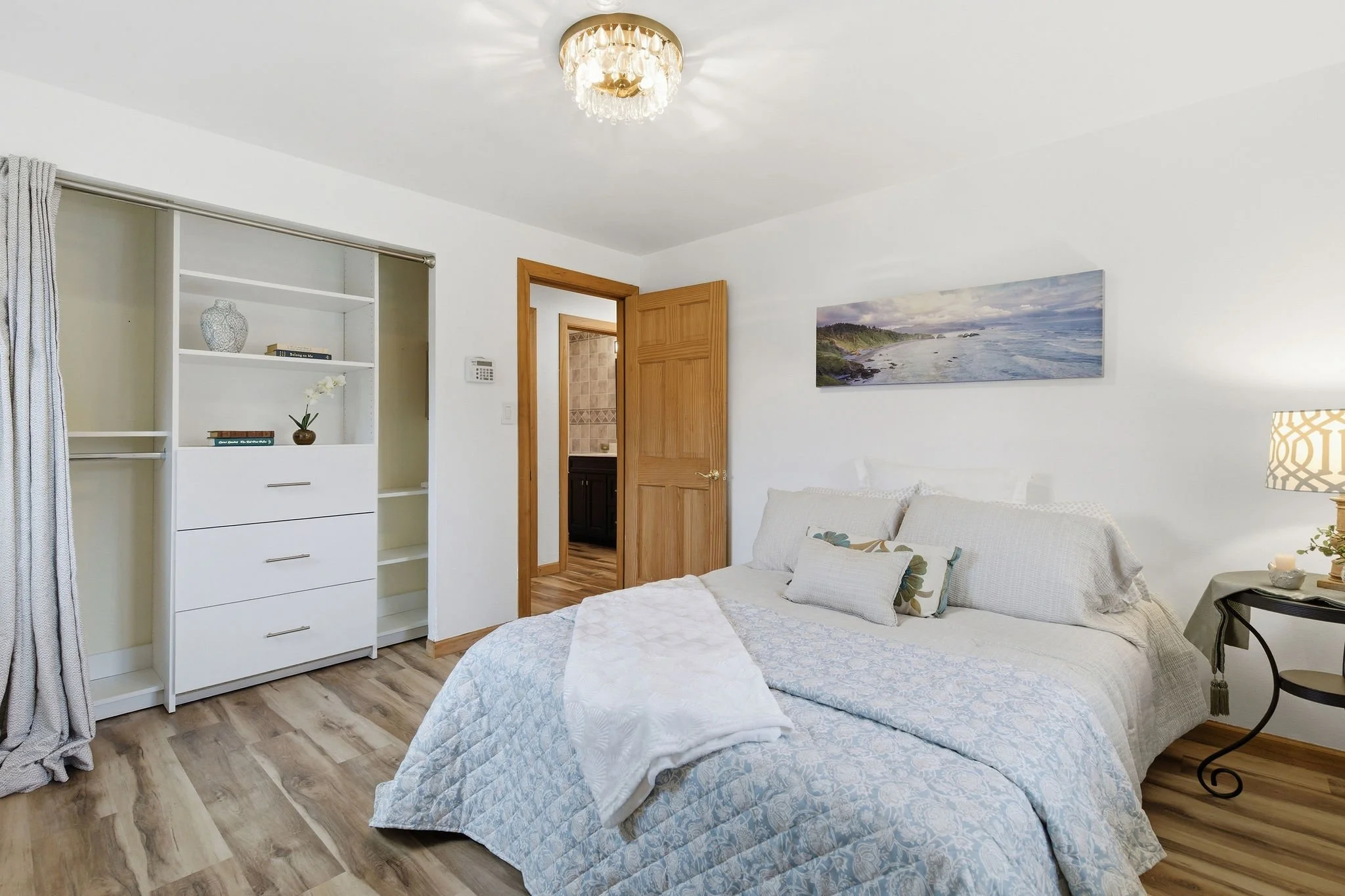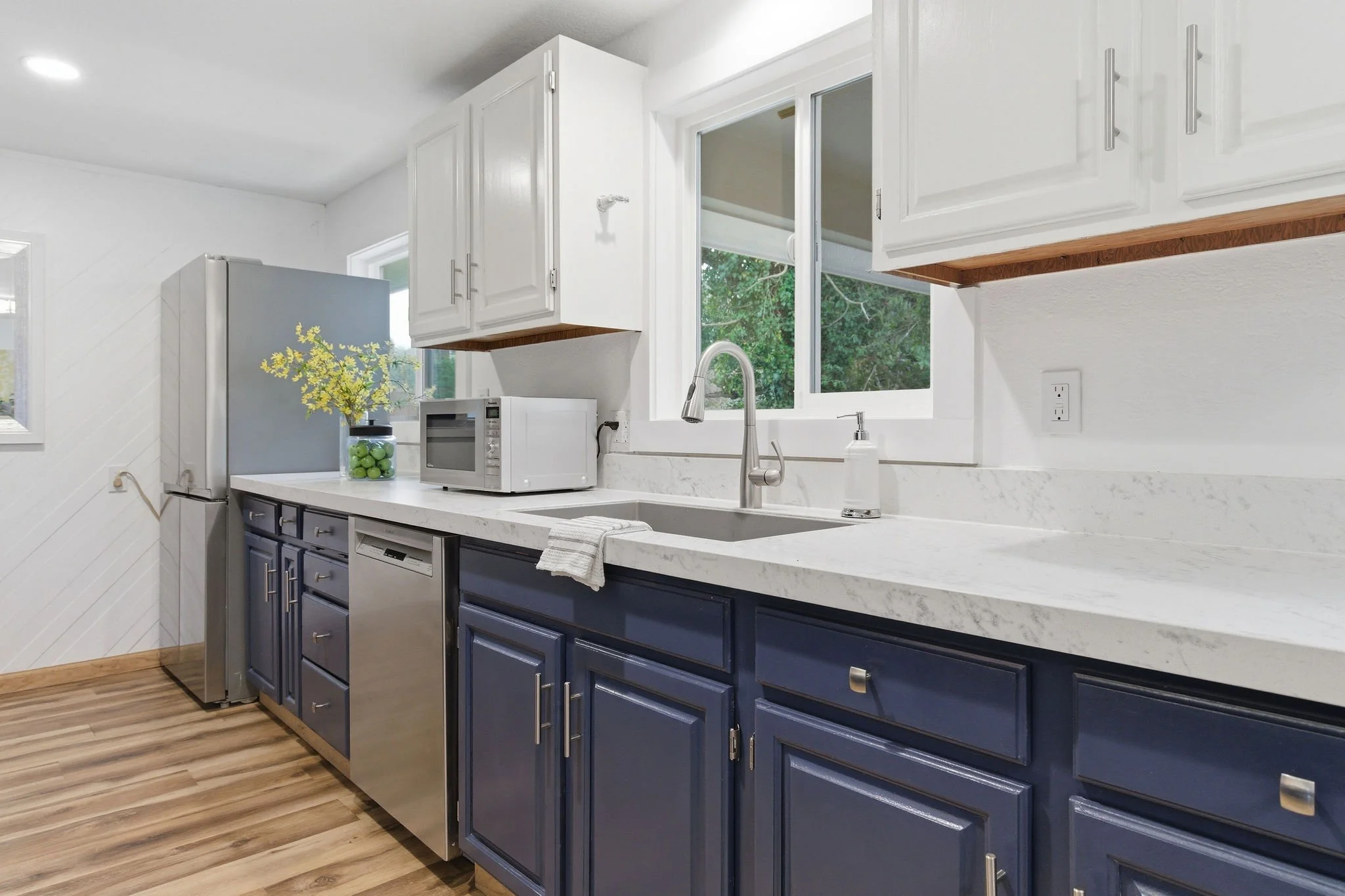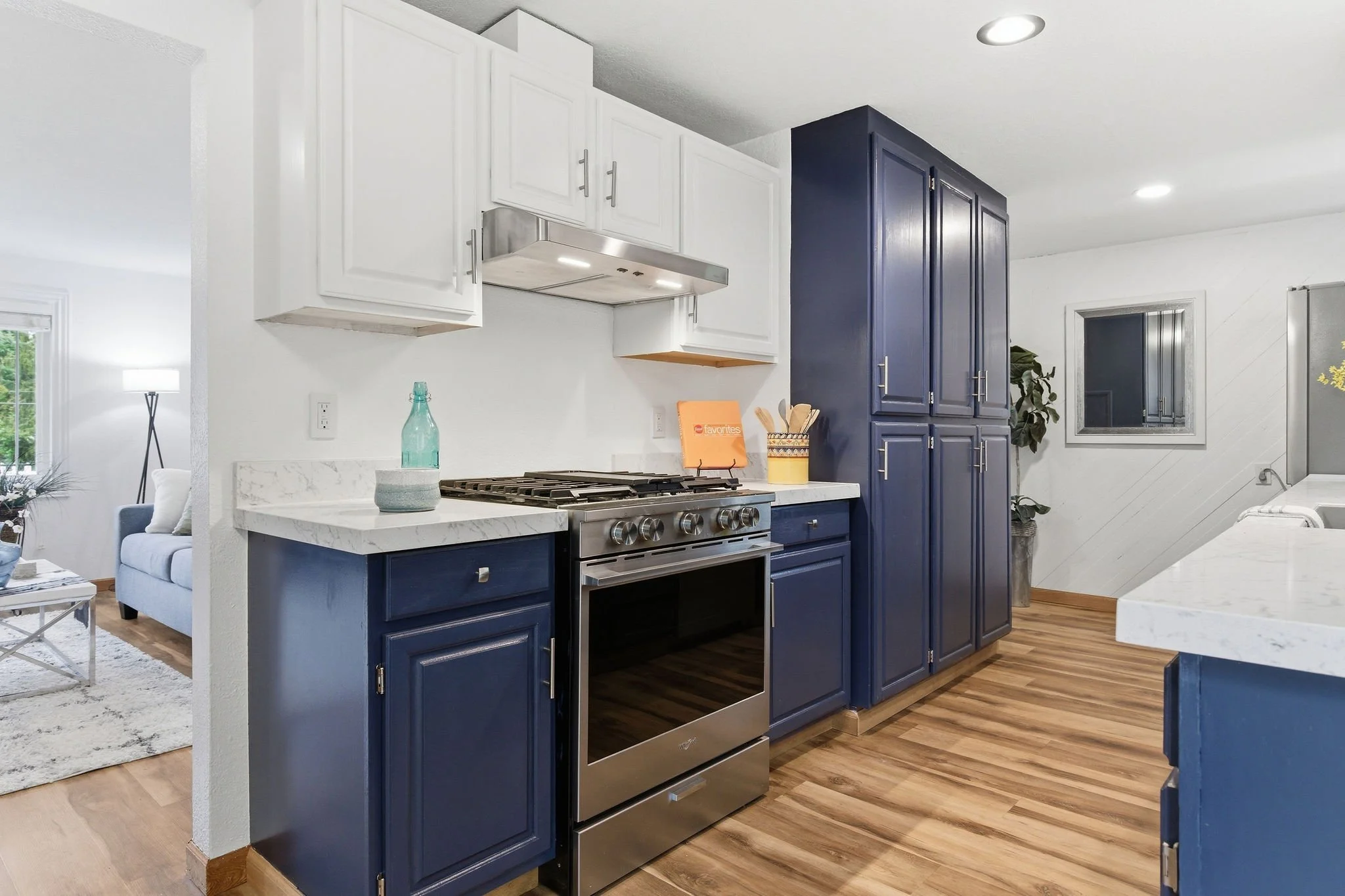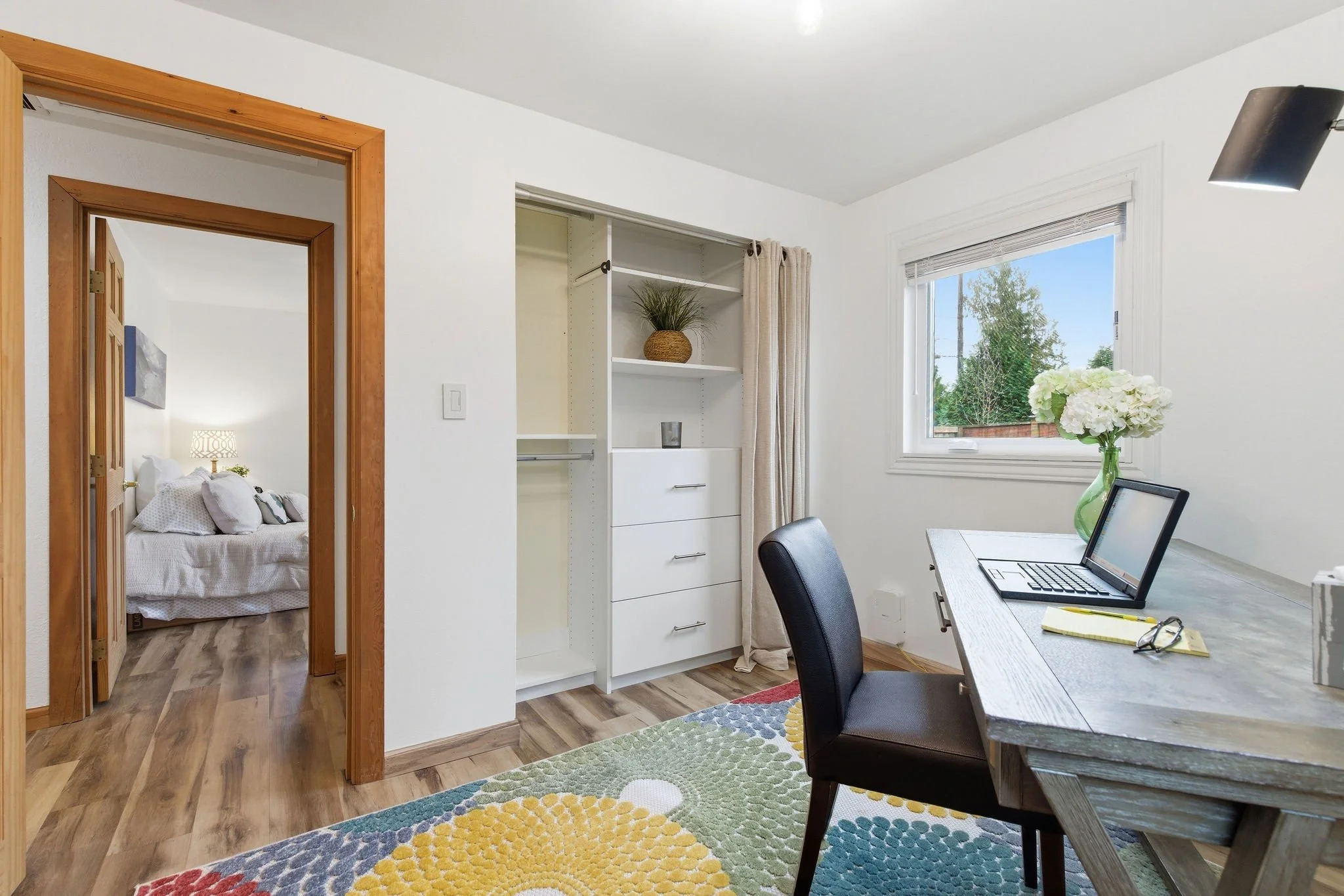 Indoor-outdoor living at its best. A wall of folding glass opens the kitchen and dining area to a covered outdoor kitchen and entertaining deck, creating seamless indoor-outdoor living and a true entertainer’s setting. This thoughtfully updated home lives larger than its footprint and offers numerous upgrades throughout. The kitchen features new quartz countertops, refreshed cabinetry and hardware, stainless steel appliances including a gas cooktop with convection oven, and durable LVP flooring throughout. The inviting family room showcases a custom electric fireplace with flanking cabinetry and quartz top. Outdoor living shines with a covered outdoor kitchen, natural gas grill and griddle, built-in recycling and trash pull-outs, and wiring in place for a patio heater. The fully fenced yard offers a level and private setting with new sod, updated fencing, and usable outdoor space. Exterior improvements include Hardie-board siding, triple-pane windows, asphalt driveway, storage shed, and gated RV or boat parking. Extra finished space adjacent to the garage offers flexibility for office, workout room, media room, or hobbies. Major updates include roof, air conditioning, water heater, crawlspace and attic insulation, and septic lids. Property currently served by septic with city sewer stub available at the front of the lot per seller documentation. Convenient access to I-5, I-405, Mill Creek, and Lynnwood. Enjoy nearby Martha Lake Airport Park, just a short walk away with a dog park, playground, skate park, and open green space.